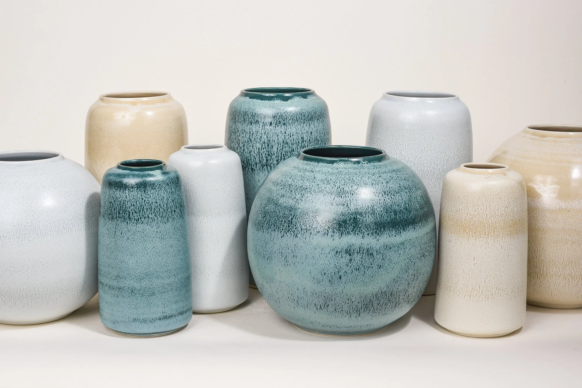 8” Moon Vase, 9” Pilar Vase, and 11” Vita Vase.