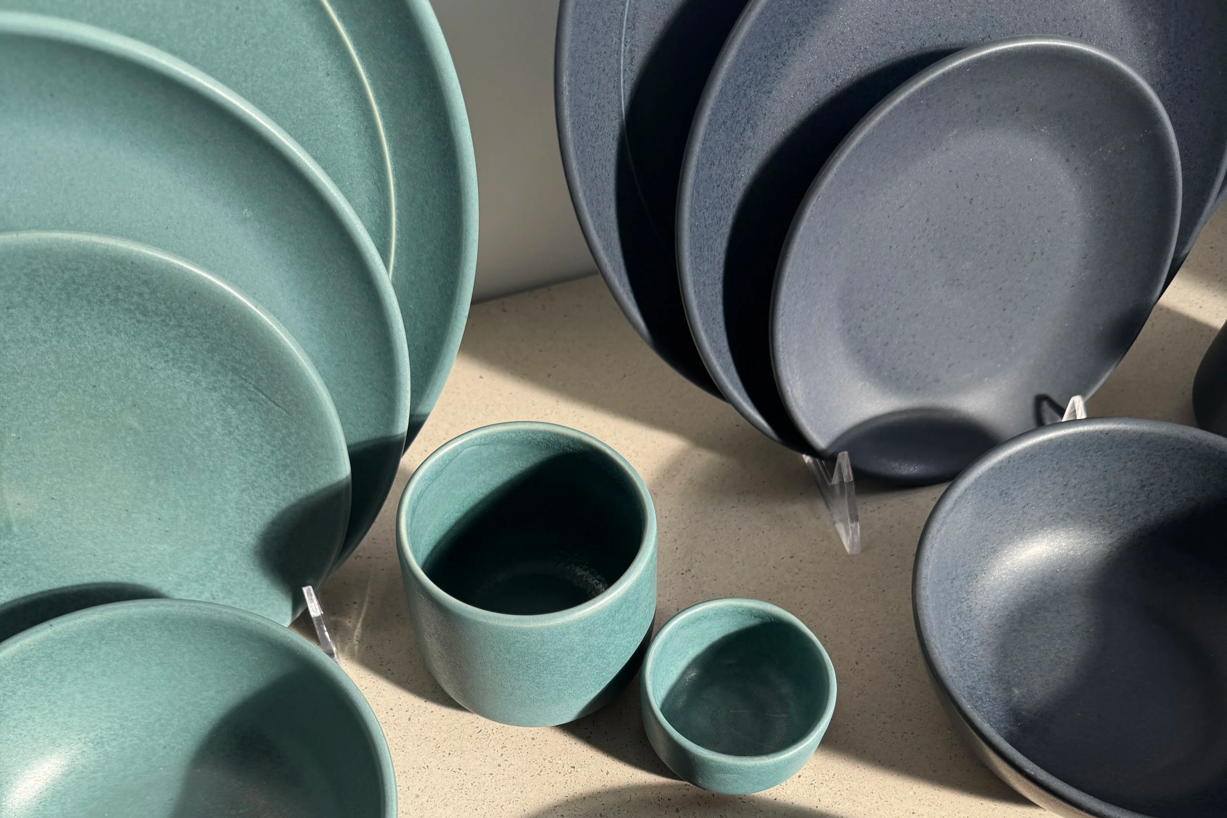If you can't visit, the next best thing is ordering a single piece in the glaze you're most curious about before committing to a full set. Every individual piece ships within a few days and our return policy gives you room to evaluate.